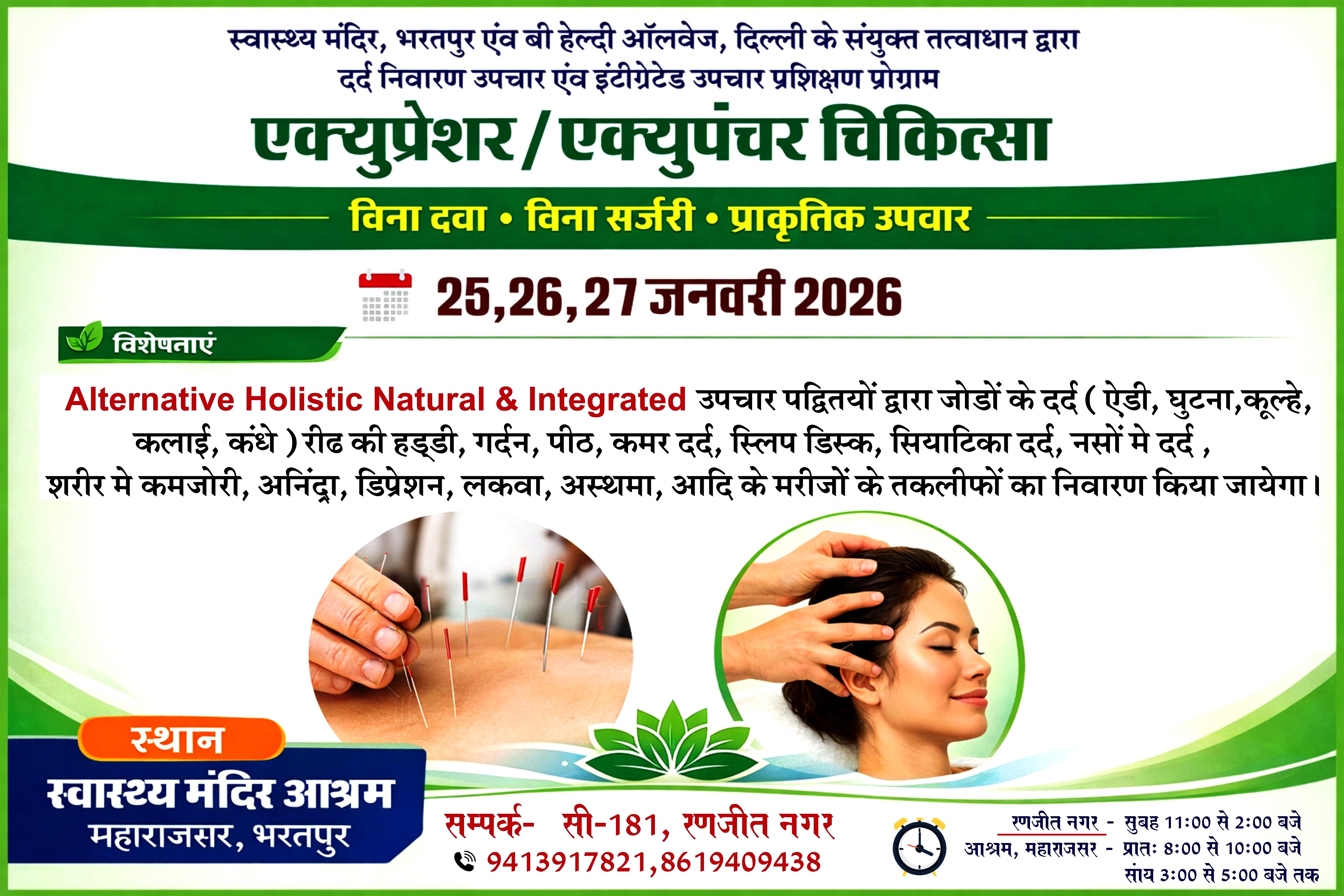 We are glad to introduce yourself that Swasthya Mandir Yog and Prakritik Chikitsa Sansthan is a Non-profit organization located in Bharatpur district of Rajasthan, with its registered office at C-181 Ranjeet Nagar Colony Bharatpur. The organization is committed to work on health through Yoga and Naturopathy, welfare of Children from slum and weaker section families, Day Care old age home, women empowerment and other philanthropy work. Our objective is to create an inclusive society, where people with disabilities, senior citizens, women and Slums children are accepted for safety in health, environment protection, empowerment, protection, care, mainstream economy and social life. The Organization has 12 A/80G, CSR-1and FCRA Registration.